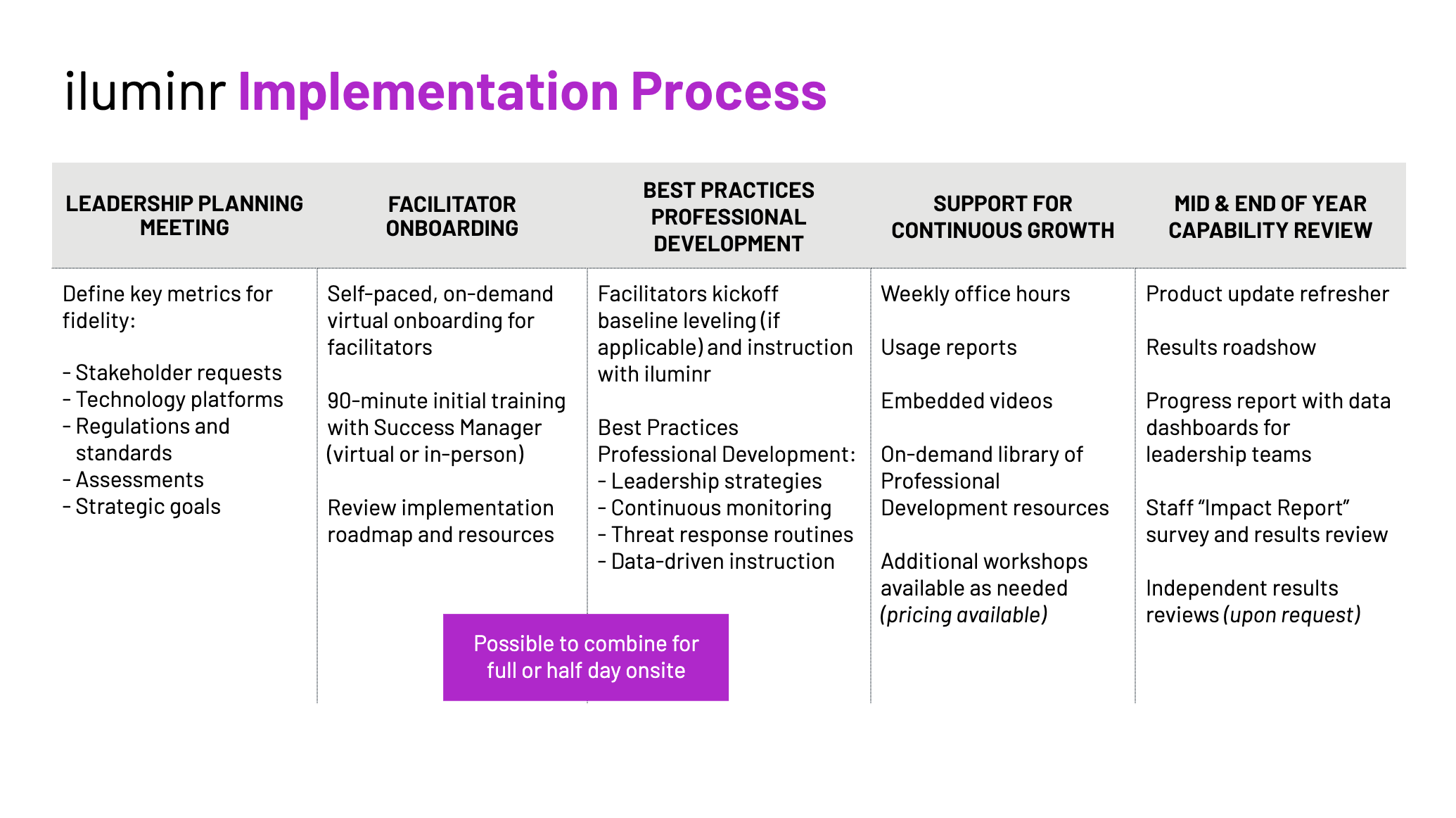 - Review existing training materials and processes to uncover gaps.