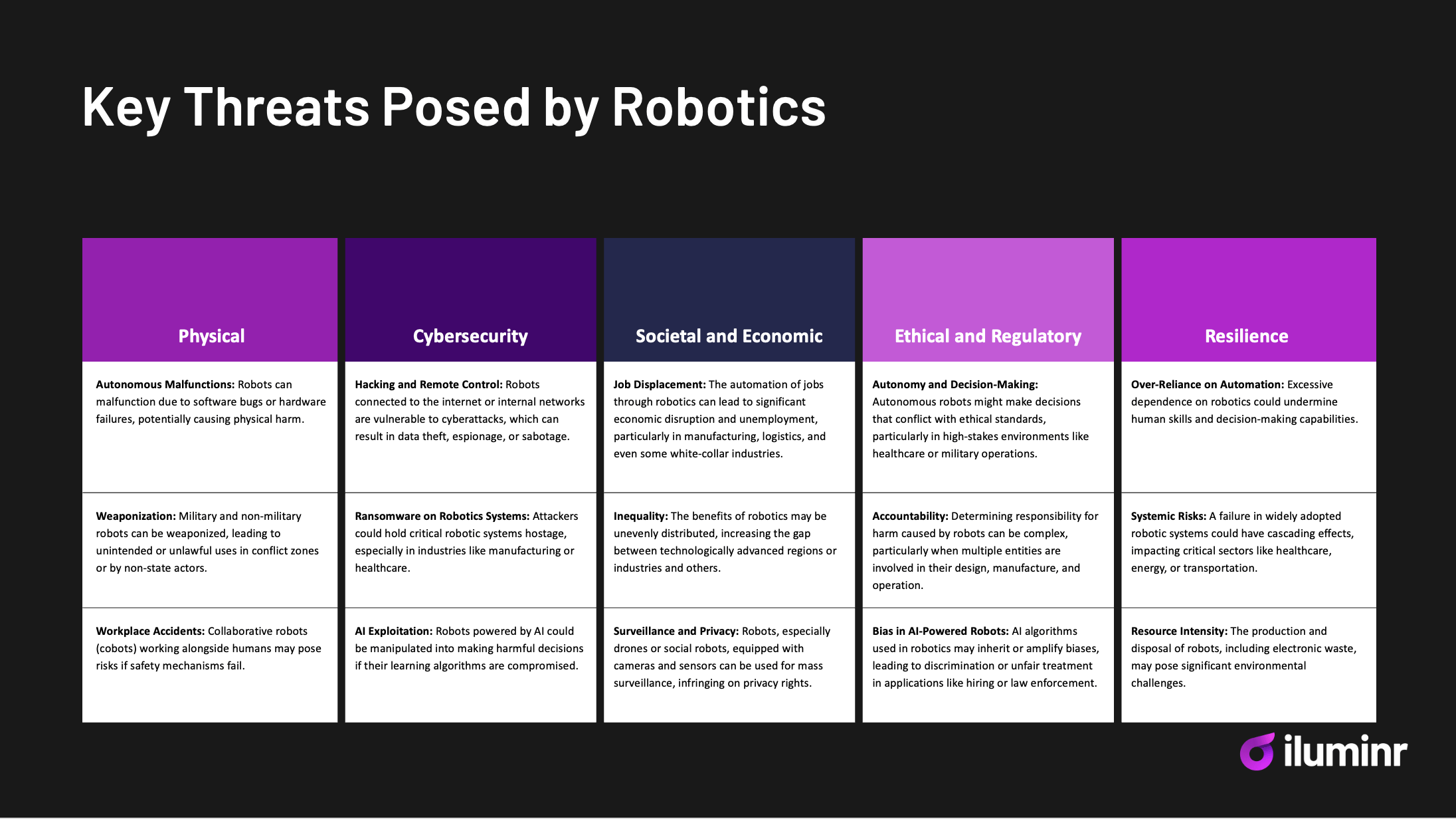 - Integrated Threats: Robotics systems hijacked to spread ransomware across connected networks.