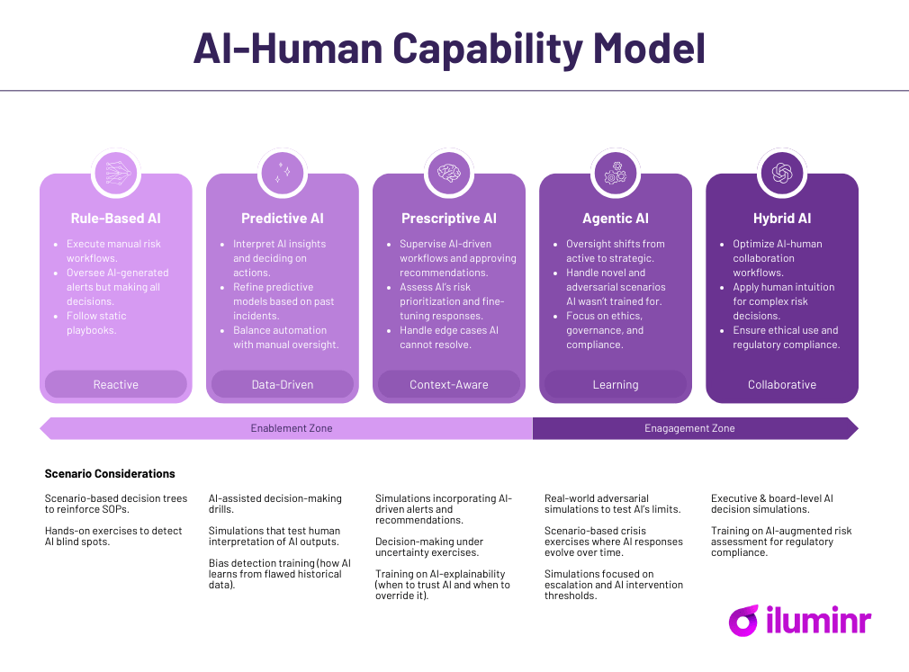 This trend highlights the importance of scenario-based AI training, ensuring that teams understand when to trust AI and when to override automated decisions. Scenarios and simulations can be an effective tool in helping teams evolve policy, procedure, train teams, and validate over time with technological advancements and learning.